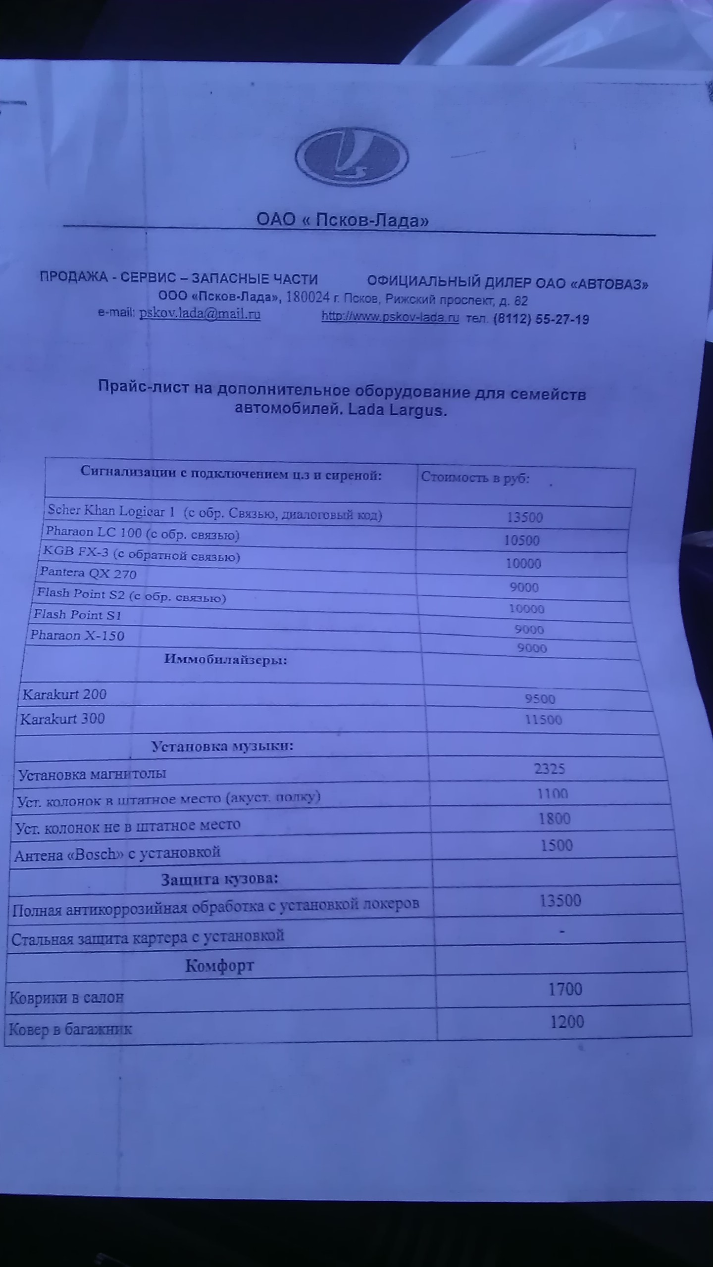 Вчера заезжал к своему ОД в Череповце- сигнализацию пере подключали- орала на жаре, заодно узнал ТО1 -5300 все, смутило одно,у ОД Рено щас на всех машинах идет замена свечей каждое ТО, а у Автоваза только каждые 30 ткм- двигатели одинаковые вплоть до шильдиков, обе машины под контролем Альянса, в чем прикол так и непонял:( LADA LARGUS 7 LUXE RS0Y5L 42-02K Серый-базальт | ||||||