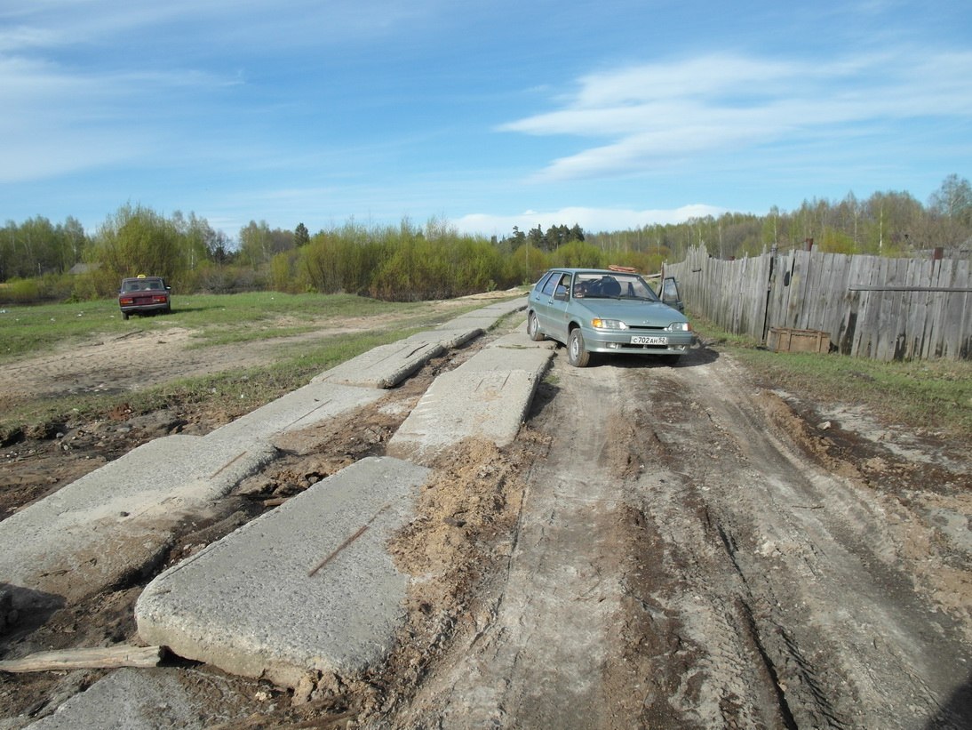 На "нормальную" природу (где шоссе до берега речки не идет) - а проселок, или не дай Бог бетонка (вот такая как ниже например) - на Ларгусе не сунешься, проверено :(