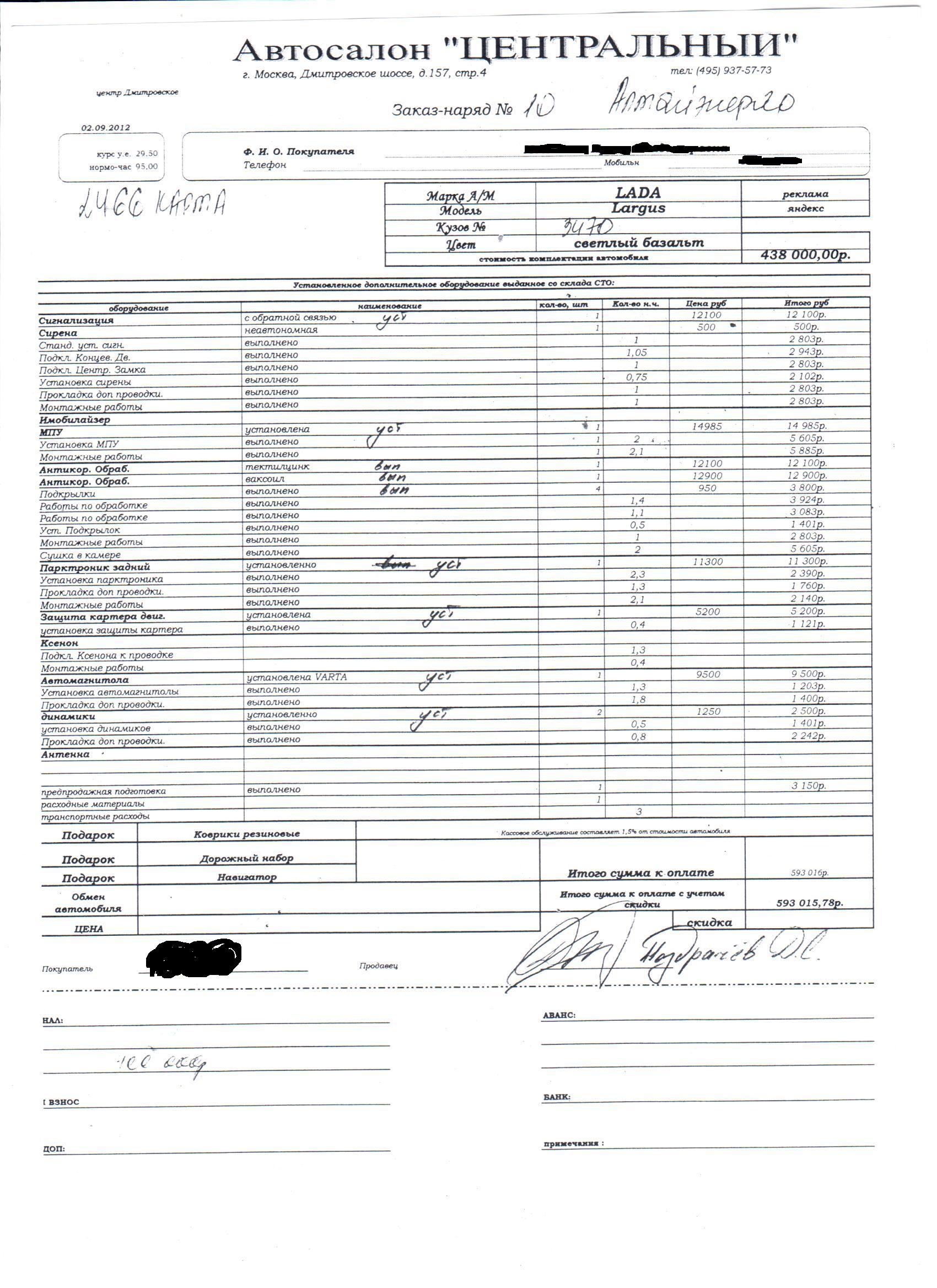 Договор мы явно будем заключать не в Химках и не в Люберцах. Скорее всего двинем в московский Мега-Моторс. | ||||||||
