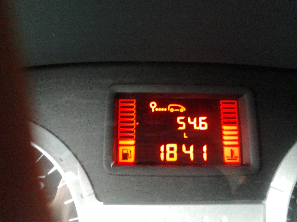 Перед дальней дорогой решил попробовать заправить бак под горлышко. После третьего отстрела заправочного пистолета смог тонкой струей, регулируя подачу легким нажатием на курок пистолета, влить примерно 10 литров. Следующую заправку производил когда осталось одно деление на указателе топлива. Перед заправкой сделал фото показаний борткомпьютера. Что в итоге: проехал 722,8 км израсходовав при этом 54,6 литра бензина и в баке осталось бензина на пробег 98 км. При расходе 7,5 л/100 км на этот пробег уйдет примерно 7,4 литра бензина. То есть емкость бака около 62 литра. Прикрепленные файлы: