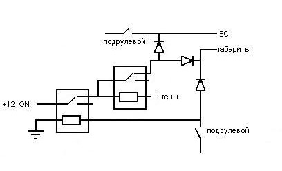 Схемка из 2-х реле на автовключение БС от датчика масла и от ручника.