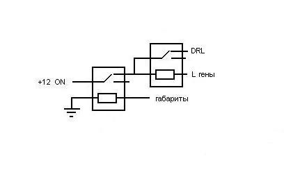 Вот схемка подключения ДХО на ближнего с габаритами, при включении штатного габарита всё отключается и переходит в штатный режим. (диоды ставим кремневые) Не ошибается тот, кто ничего не делает!!! АВТО RS0Y5-42-02D ЛЮКС, 7 МЕСТ, ПЛАТИНА. |